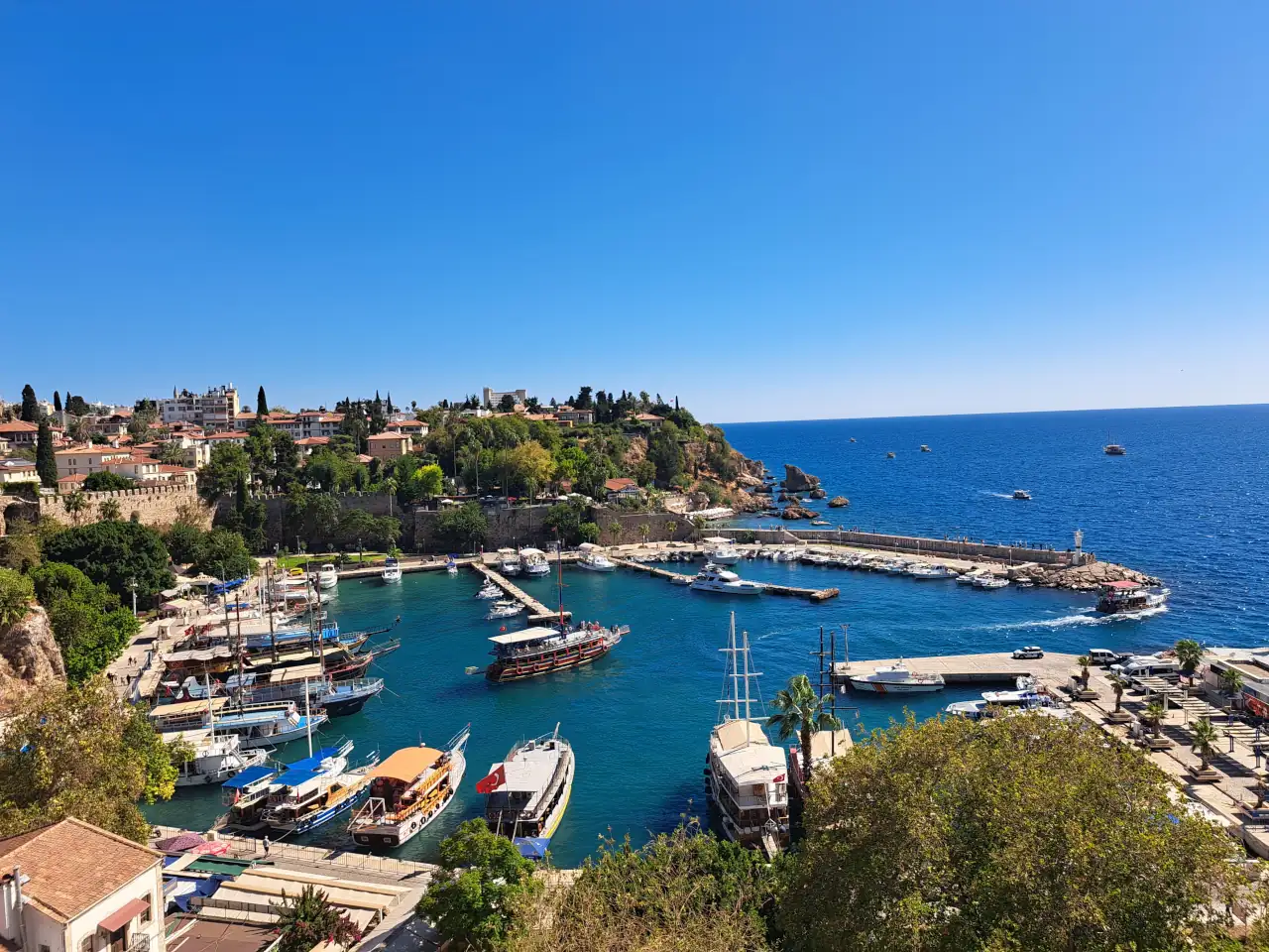 Kaleiçi ; büyük bir bölümü yıkılmış ve yok olmuş at nalı şeklinde içten ve dıştan surlarla çevrilidir. Surlar, Helenistik, Roma, Bizans, Selçuklu ve Osmanlı devirleri ortak eseridir. Surların 80 burcu vardır. Surların içinde kiremit çatılı 3.000 kadar ev bulunmaktadır. Evlerin karakteristik yapıları Antalya'nın sadece mimari tarihi hakkında fikir vermekle kalmaz, aynı zamanda bölgedeki yaşam tarzını, gelenek ve görenekleri en iyi şekilde yansıtır. 1972 yılında Antalya iç limanı ve Kaleiçi semti, özgün dokusu nedeniyle "Gayrimenkul Eski Eserler ve Anıtlar Yüksek Kurulu" tarafından "SİT bölgesi" olarak koruma altına alınmıştır. Turizm Bakanlığı'na "Antalya- Kaleiçi Kompleksi" restorasyon çalışmasından dolayı, 28 Nisan 1984’de FİJET (Uluslararası Turizm Yazarları Birliği) tarafından Altın Elma Turizm Oskarı ödülü verilmiştir. Günümüzde Kaleiçi otelleri, pansiyonları, restoranları ve barları ile eğlence merkezi haline gelmiştir.