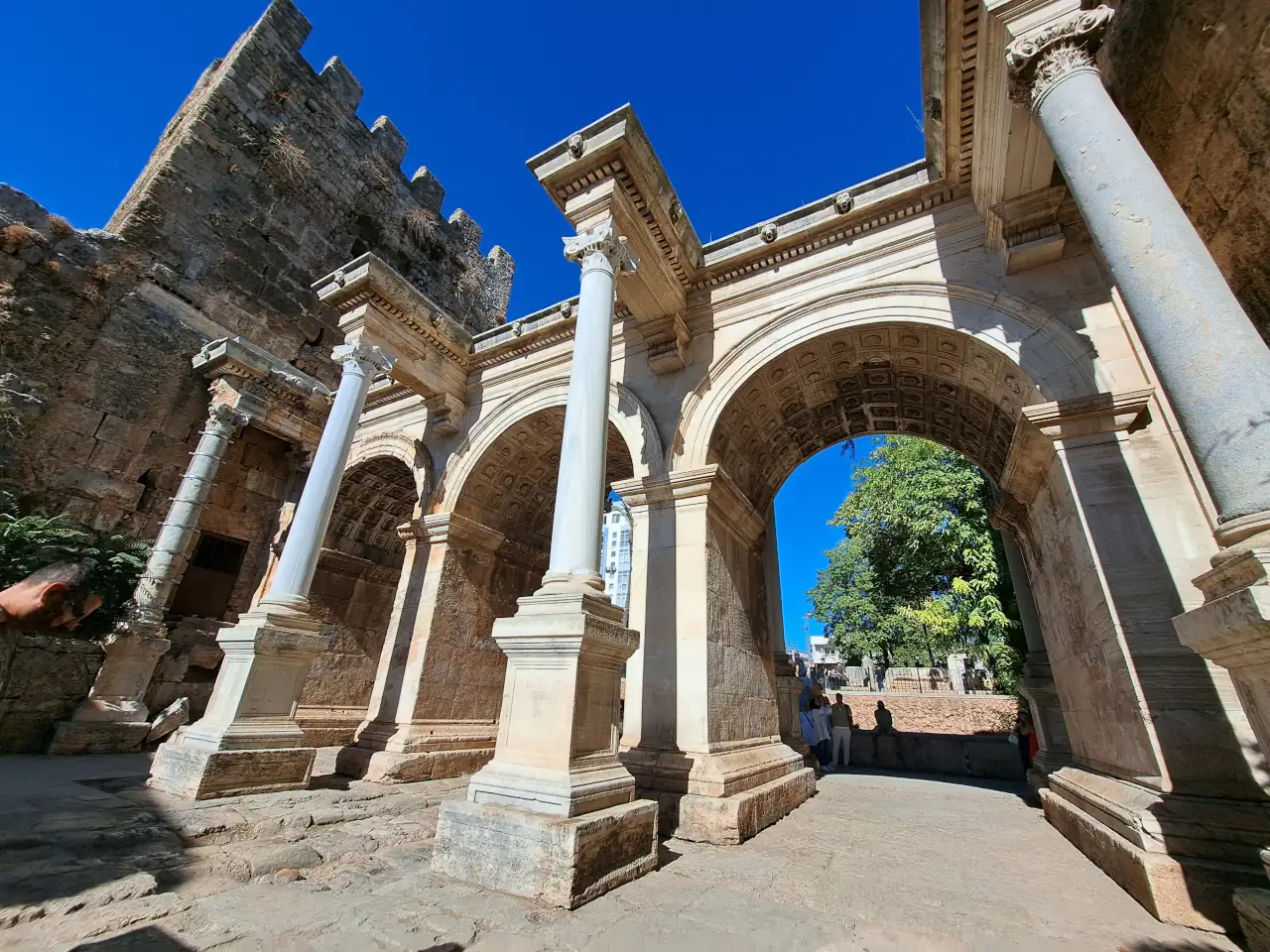 Tarihçe : "Attalos Yurdu" anlamına gelen Antalya, II. Attalos tarafından kurulmuştur. Bergama Krallığı’nın sona ermesiyle (M.Ö. 133) bir süre bağımsız kalan kent, daha sonra korsanların eline geçmiştir. M.Ö. 77’de Komutan Servilius Isauricus tarafından Roma topraklarına katılmıştır. M.Ö. 67’de Pompeius’un donanmasına üs olmuştur. M.S. 130’da Hadrianus’un Attaleia’yı ziyaret etmesi şehrin gelişmesini sağlamıştır. Bizans egemenliği sırasında piskoposluk merkezi olan ismi görülen Attaleia, Türklerin eline geçtikten sonra büyük bir gelişme göstermiştir. Modern şehir, antik yerleşmenin üzerine kurulduğundan, Antalya’da antik çağ kalıntılarına çok az rastlanmaktadır. Görülebilen kalıntıların ilki, eski liman olarak nitelenen liman mendireğinin bir kısmı ve limanı çevreleyen surdur. Surların park dışındaki kısmında restorasyonu yapılan Hadrian Kapısı Antalya’nın en güzel antik eserlerinden biridir.
